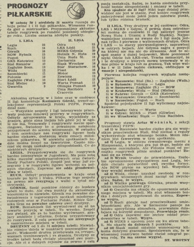Archiwum / Piłkarskie prognozy nr 1354 (12/1971) 55174/123969 Podziel się Tytuł Piłkarskie prognozy Autor Stanisław Wrotny Rubryka Piłkarskie prognozy Artykuł z numeru 1354 (12/1971) Data wydania 21 marca 1971