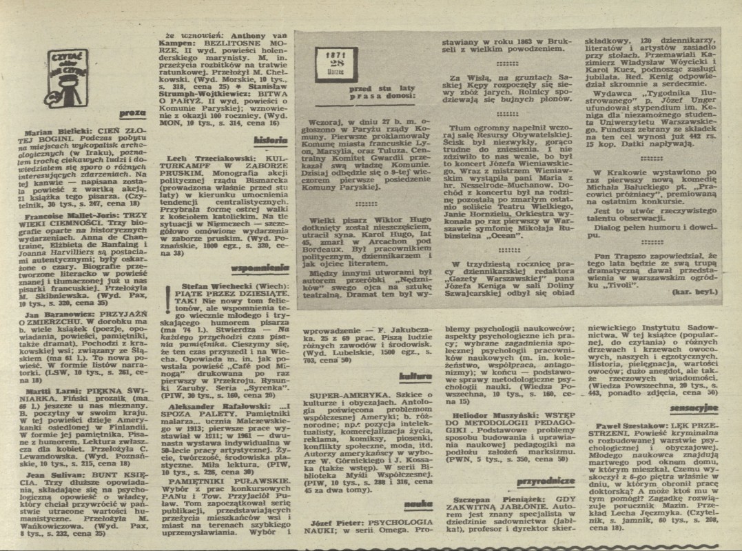 Archiwum / Czytać albo nie czytać? nr 1355 (13/1971) 55219/123969 Podziel się Tytuł Czytać albo nie czytać? Rubryka Czytać albo nie czytać? Artykuł z numeru 1355 (13/1971) Data wydania 23 marca 1971 Tagi Jan Baranowicz Lech Trzeciakowski Stefan Wiechecki