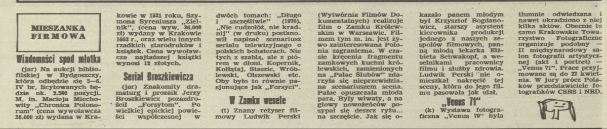 Archiwum / Mieszanka firmowa nr 1355 (13/1971) 15/66 Podziel się Tytuł Mieszanka firmowa Rubryka Mieszanka firmowa Artykuł z numeru 1355 (13/1971) Data wydania 23 marca 1971 Tagi Venus 71 Jerzy Broszkiewicz Ludwik Perski