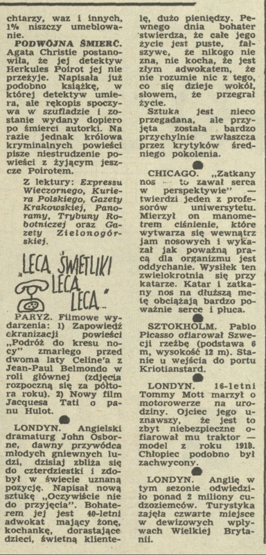 Archiwum / Lecą świetliki nr 1022 (45/1964) 08/32 Podziel się Tytuł Lecą świetliki, lecą Rubryka Lecą świetliki Artykuł z numeru 1022 (45/1964) Data wydania 8 listopada 1964 Tagi Belmondo Pablo Picasso turystyka w Anglii różności
