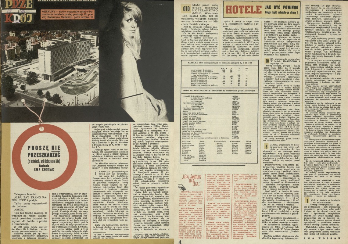 Archiwum / Artykuł nr 1024 (47/1964) 92/119 Podziel się Tytuł Proszę nie przeszkadzać (o hotelach, ani dobrze ani źle) Autor Ewa Kossak Kategoria Artykuł Artykuł z numeru 1024 (47/1964) Data wydania 22 listopada 1964 Tagi hotele pobyt