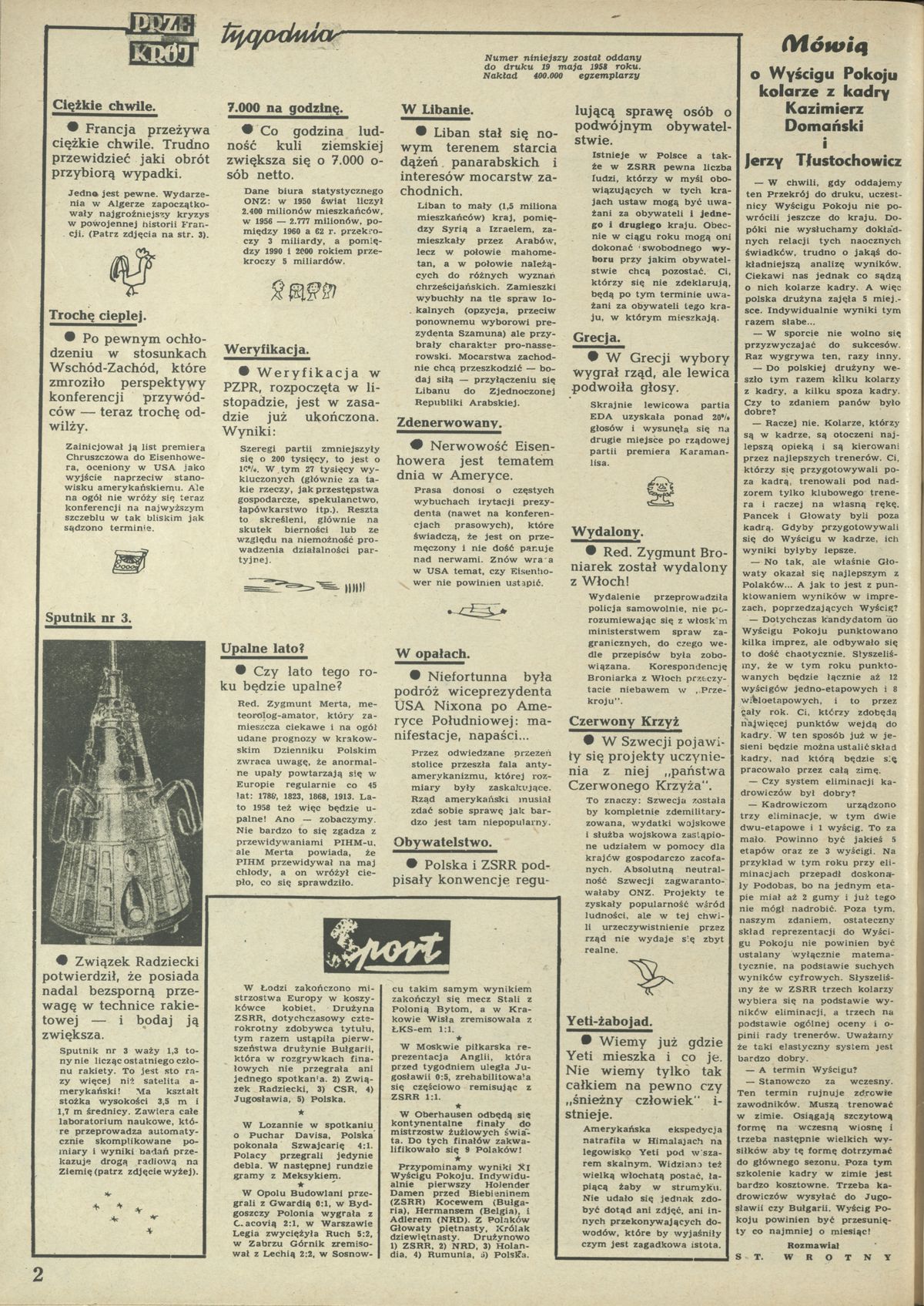 Archiwum / Sport nr 685 (21/1958) 27892/123969 Podziel się Tytuł Wyscig pokoju Autor St Rubryka Sport Artykuł z numeru 685 (21/1958) Data wydania 25 maja 1958