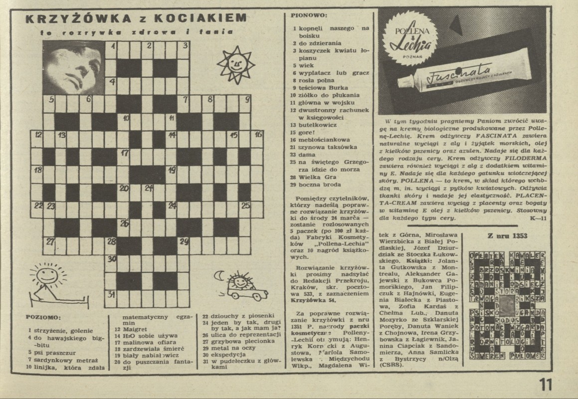 Archiwum / Krzyżówka z kociakiem nr 1354 (12/1971) 67382/121061 Podziel się Tytuł Krzyżówka z kociakiem Rubryka Krzyżówka z kociakiem Artykuł z numeru 1354 (12/1971) Data wydania 21 marca 1971
