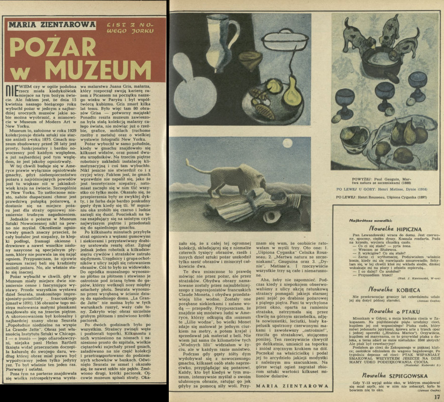 Archiwum / List z Nowego Jorku nr 683 (19/1958) 29/57 Podziel się Tytuł List z Nowego Jorku Autor Maria Zientarowa Rubryka List z Nowego Jorku Artykuł z numeru 683 (19/1958) Data wydania 11 maja 1958 Tagi Pau Gauguin Henri Matisse Henri Rousseau