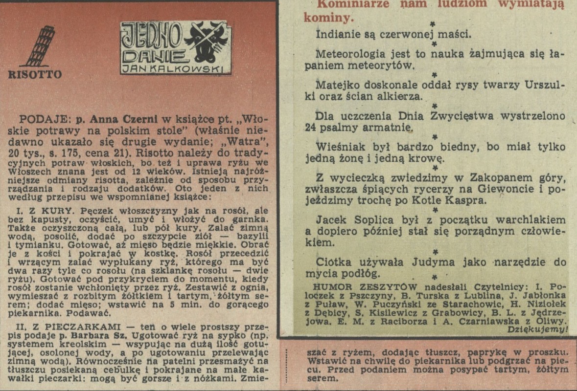 Archiwum / Jedno danie nr 1354 (12/1971) 406/465 Podziel się Tytuł Risotto Autor Jan Kalkowski Rubryka Jedno danie Artykuł z numeru 1354 (12/1971) Data wydania 21 marca 1971 Tagi kulinaria gastronomia przepis kulinarny