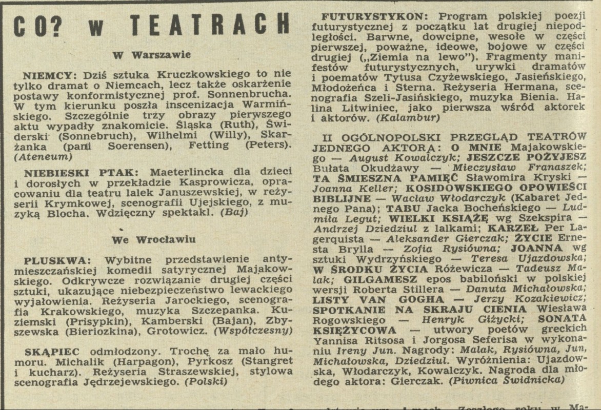 Archiwum / Teatr nr 1178 (45/1967) 229/274 Podziel się Tytuł Co? w teatrach Rubryka Teatr Artykuł z numeru 1178 (45/1967) Data wydania 5 listopada 1967 Tagi Skąpiec Teatr Polski przegląd teatrów