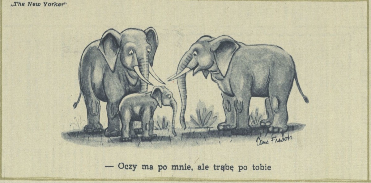 Archiwum / Historyjki obrazkowe nr 1399 (05/1972) 201/2624 Podziel się Tytuł Oczy ma po mnie, ale trąbę po tobie Kategoria Historyjki obrazkowe Artykuł z numeru 1399 (5/1972) Data wydania 30 stycznia 1972