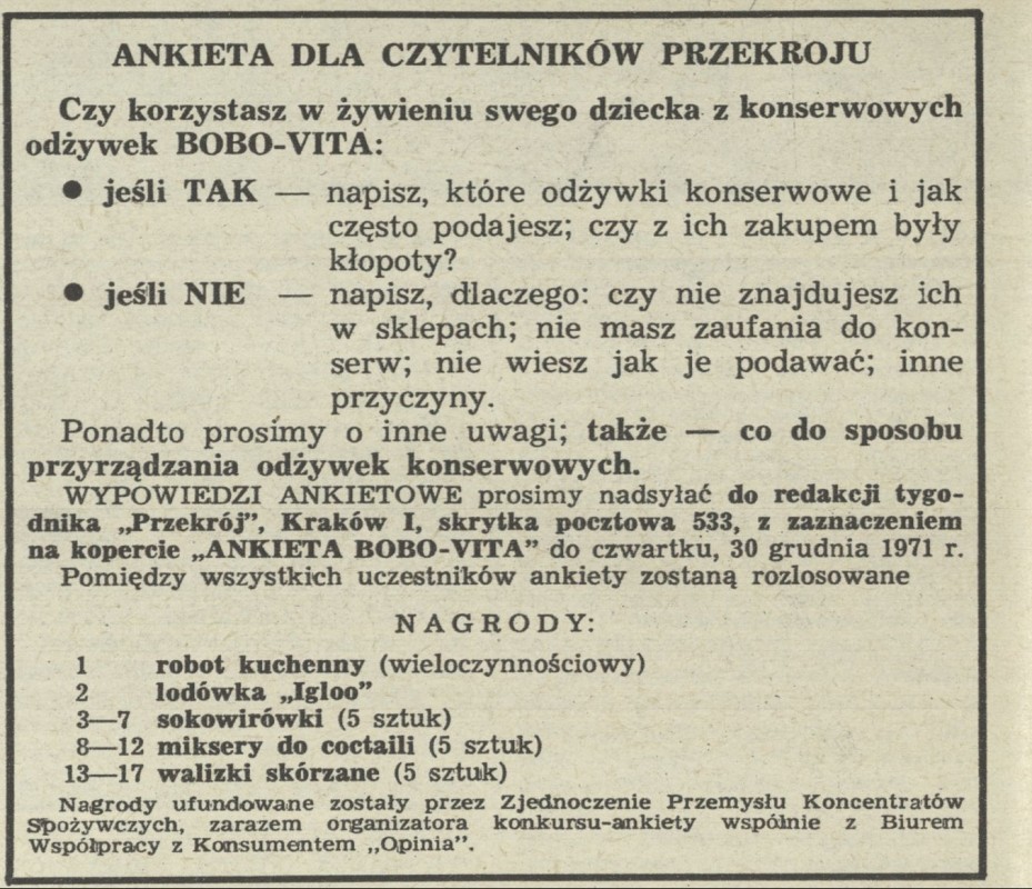 Archiwum / Ankieta nr 1393 (51/1971) 1/1 Podziel się Tytuł Ankieta Rubryka Ankieta Artykuł z numeru 1393 (51/1971) Data wydania 19 grudnia 1971 Tagi ankieta Bobo-vita żywienie