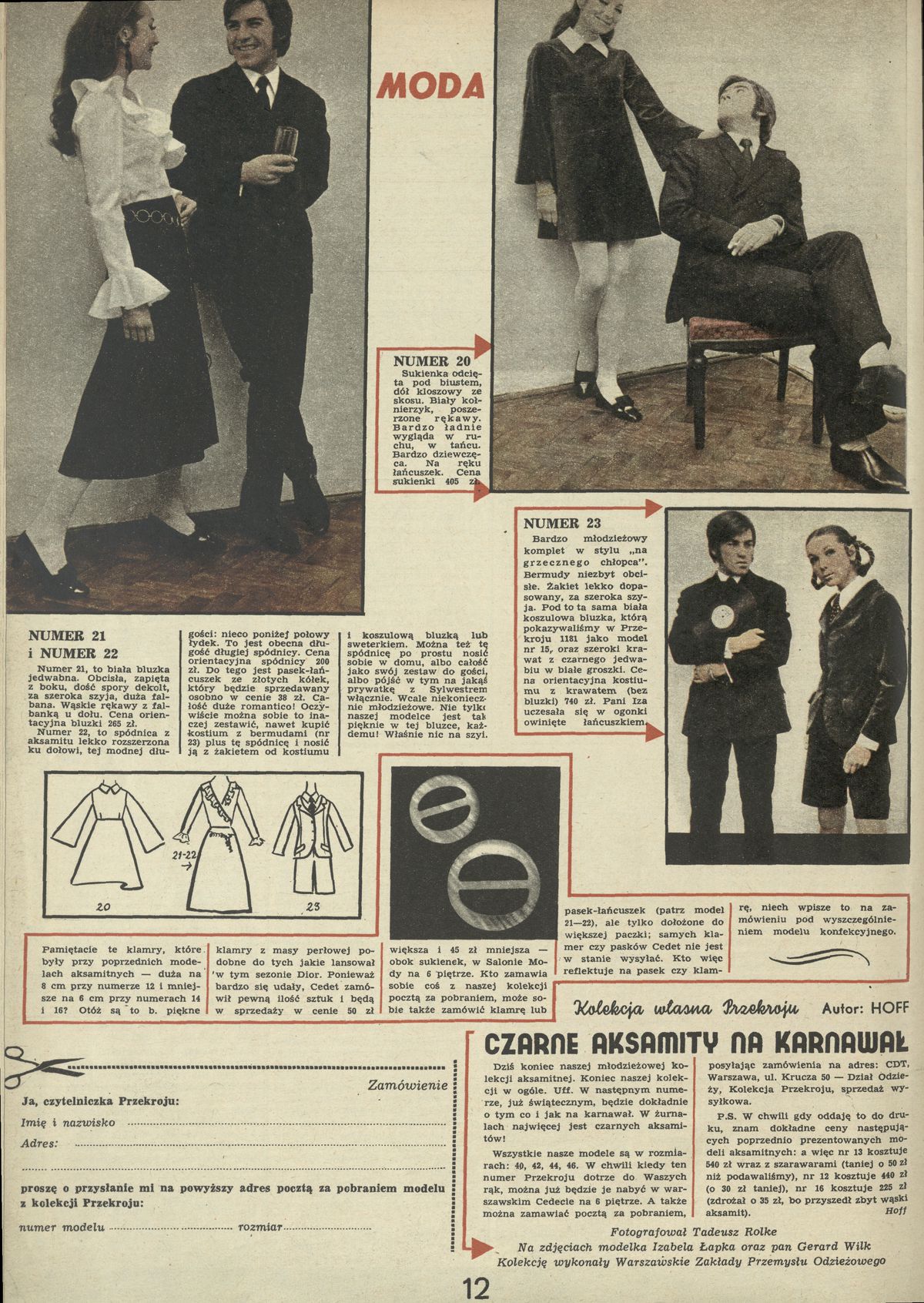 Archiwum / Własna kolekcja Przekroju (moda) nr 1183 (50/1967) 73081/121061 Podziel się Tytuł Moda Autor Barbara Hoff Tadeusz Rolke Rubryka Własna kolekcja Przekroju (moda) Artykuł z numeru 1183 (50/1967) Data wydania 10 grudnia 1967 Tagi komplet sukienka klamry aksamit