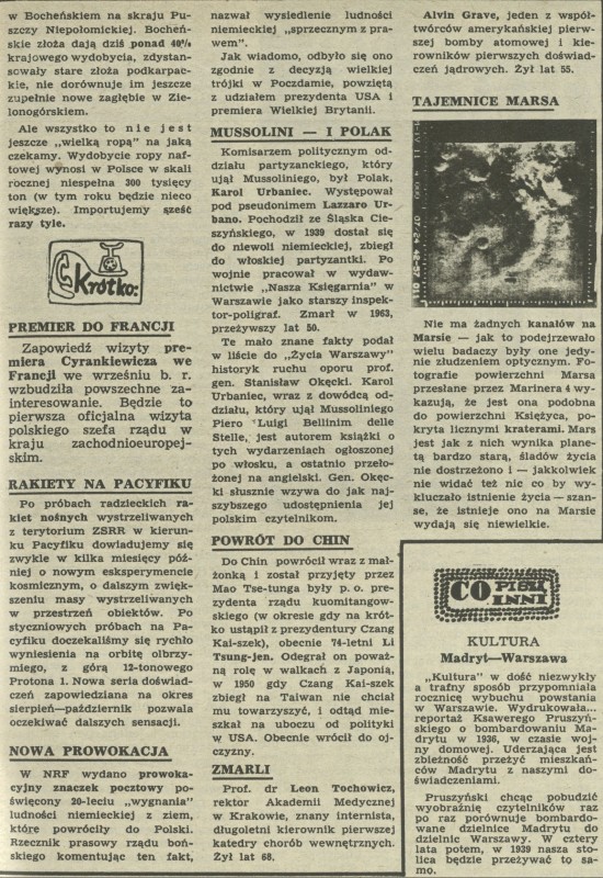 Archiwum / Krótko nr 1061 (32/1965) 352/889 Podziel się Tytuł Krótko Rubryka Krótko Artykuł z numeru 1061 (32/1965) Data wydania 7 sierpnia 1965