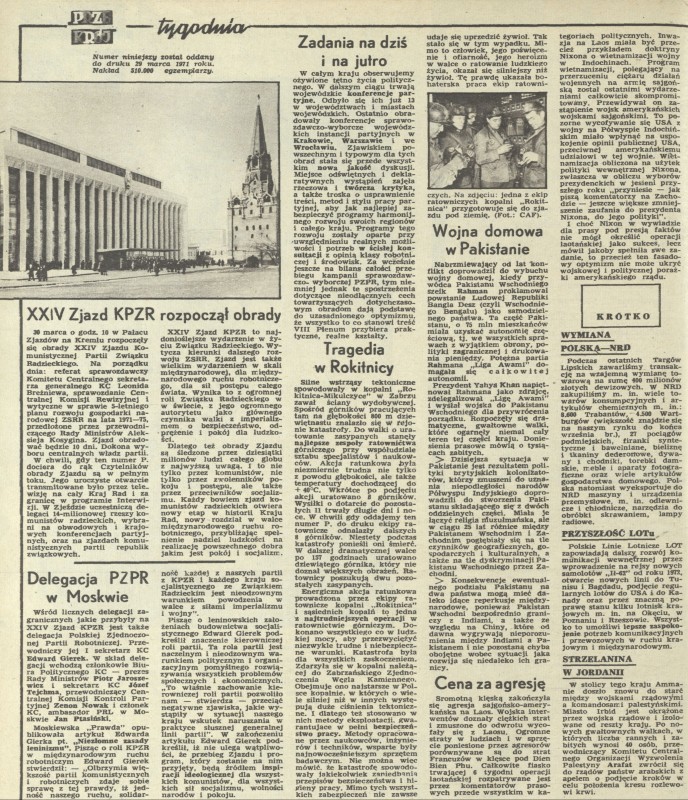 Archiwum / Przekrój tygodnia nr 1356 (14/1971) 72/350 Podziel się Tytuł Przekrój Tygodnia Rubryka Przekrój tygodnia Artykuł z numeru 1356 (14/1971) Data wydania 4 kwietnia 1971 Tagi XXIV Zjazd KC PZPR Rokitnica Liga Awami
