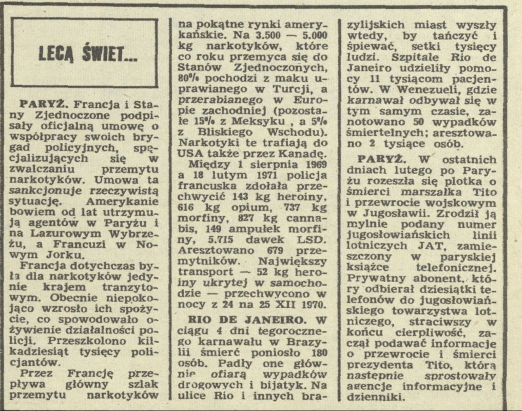 Archiwum / Lecą świetliki nr 1356 (14/1971) 22/33 Podziel się Tytuł Lecą świetliki Rubryka Lecą świetliki Artykuł z numeru 1356 (14/1971) Data wydania 4 kwietnia 1971 Tagi Rio d eJaneiro Tito JAT