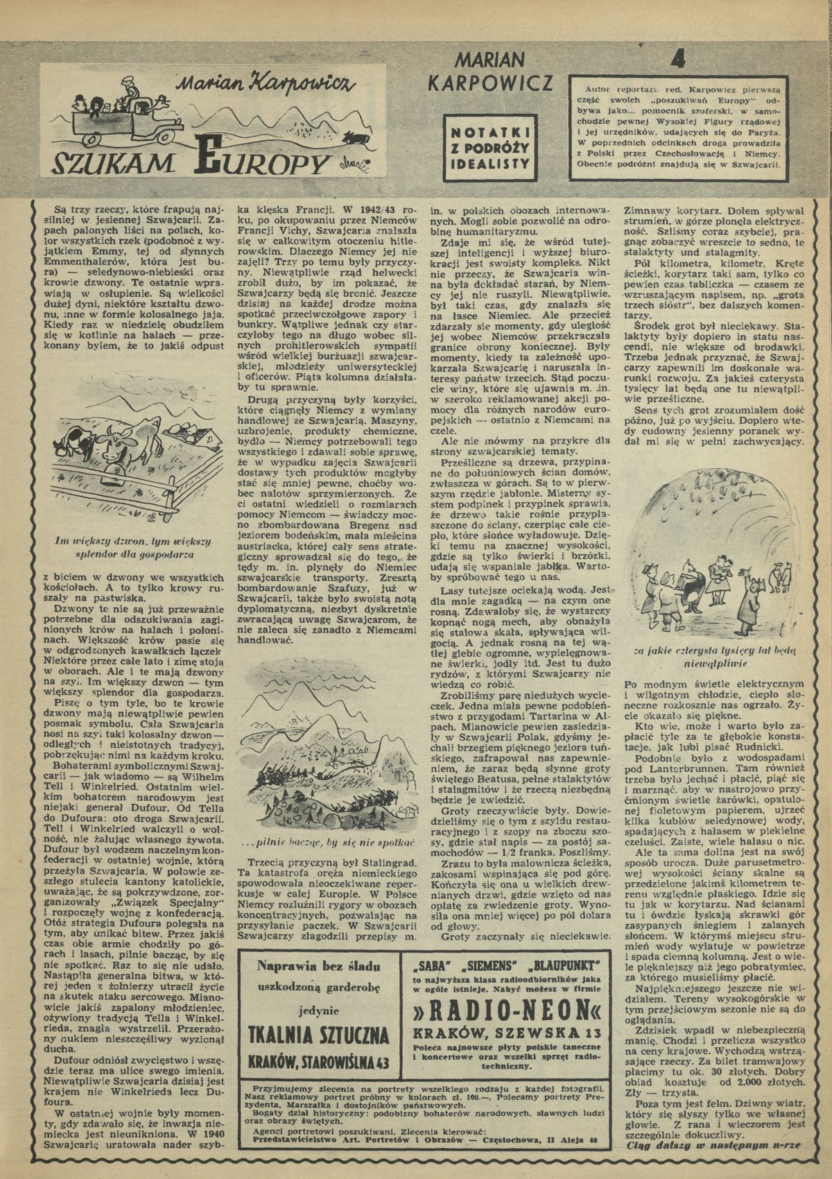 Archiwum nr 37-38 (37-38/1945) 20/42 Podziel się Tytuł Szukam Europy Autor Marian Karpowisz Artykuł z numeru 37-38 (37/1945) Data wydania 25 grudnia 1945