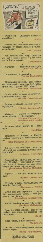 Archiwum / Myśli ludzi wielkich, średnich i psa Fafika nr 657 (46/1957) 216/251 Podziel się Tytuł Myśli ludzi wielkich i średnich oraz psa Fafika Autor Bracia Rojek Rubryka Myśli ludzi wielkich, średnich i psa Fafika Artykuł z numeru 657 (46/1957) Data wydania 10 listopada 1957 Tagi myśli cytaty