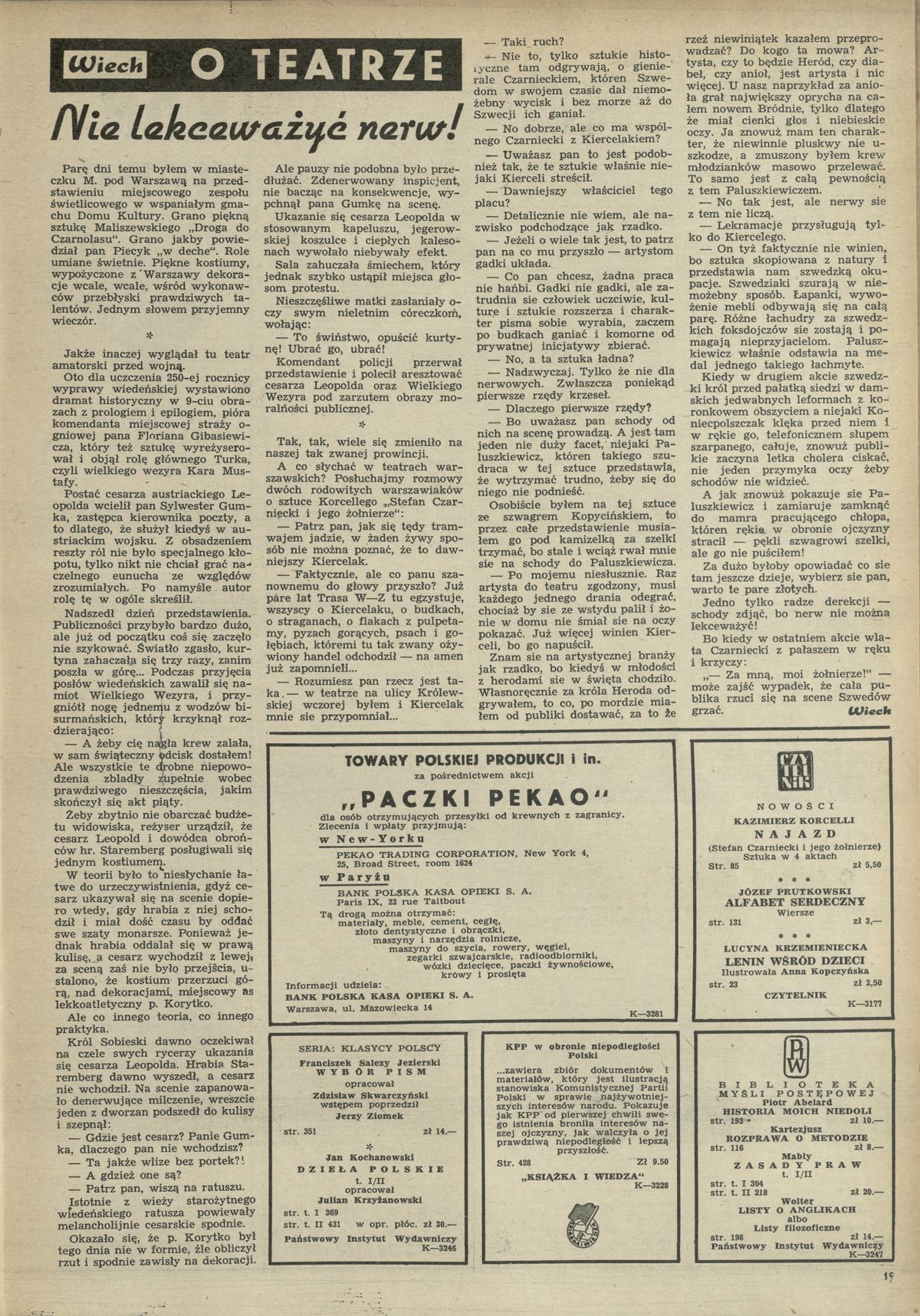Archiwum / Felieton nr 402-3 (51-52/1952) 220/329 Podziel się Tytuł O teatrze. Nie lekceważyć nerw! Autor Wiech Kategoria Felieton Artykuł z numeru 402-3 (51/1952) Data wydania 1 grudnia 1952