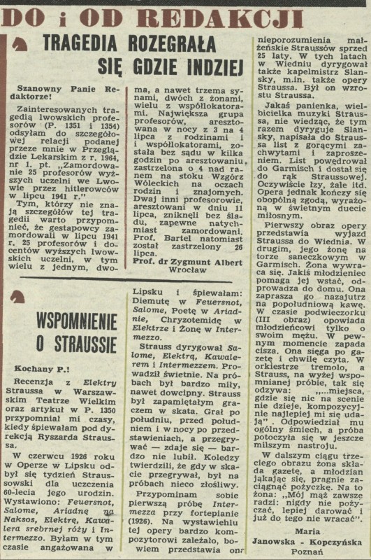 Archiwum / Listy do i od redakcji nr 1359 (17/1971) 24/268 Podziel się Tytuł Wspomnienie o Straussie Autor Maria Janowska-Kopczyńska Rubryka Listy do i od redakcji Artykuł z numeru 1359 (17/1971) Data wydania 25 kwietnia 1971