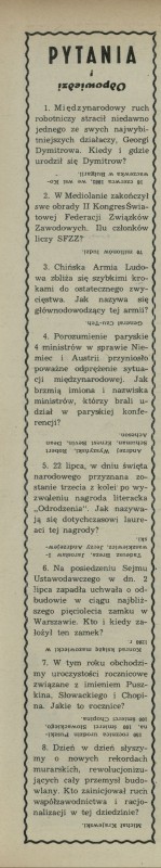 Archiwum / Różności nr 223 (29/1949) 6824/123969 Podziel się Tytuł Pytania i odpowiedzi Kategoria Różności Artykuł z numeru 223 (29/1949) Data wydania 17 lipca 1949 Tagi Aleksander Puszkin Fryderyk Chopin Juliusz Słowacki Chińska Armia Ludowa