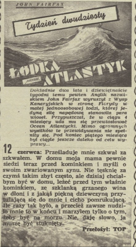 - Łódką przez Atlantyk: tydzień dwudziesty