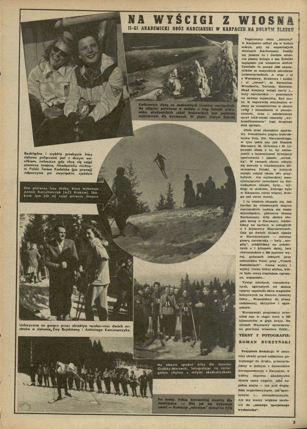 Archiwum / Przekrój tygodnia nr 103-4 (13-14/1947) 03/50 Podziel się Tytuł Na wyścigi z wiosną Autor Roman Burzyński Rubryka Przekrój tygodnia Artykuł z numeru 103-4 (13/1947) Data wydania 30 marca 1947 Tagi obóz narty narciarstwo