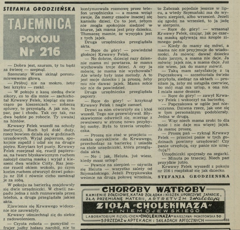 Archiwum / Różności nr 223 (29/1949) 6841/123969 Podziel się Tytuł Tajemnica pokoju nr 216 Autor Stefania Grodzieńska Kategoria Różności Artykuł z numeru 223 (29/1949) Data wydania 17 lipca 1949 Tagi felieton