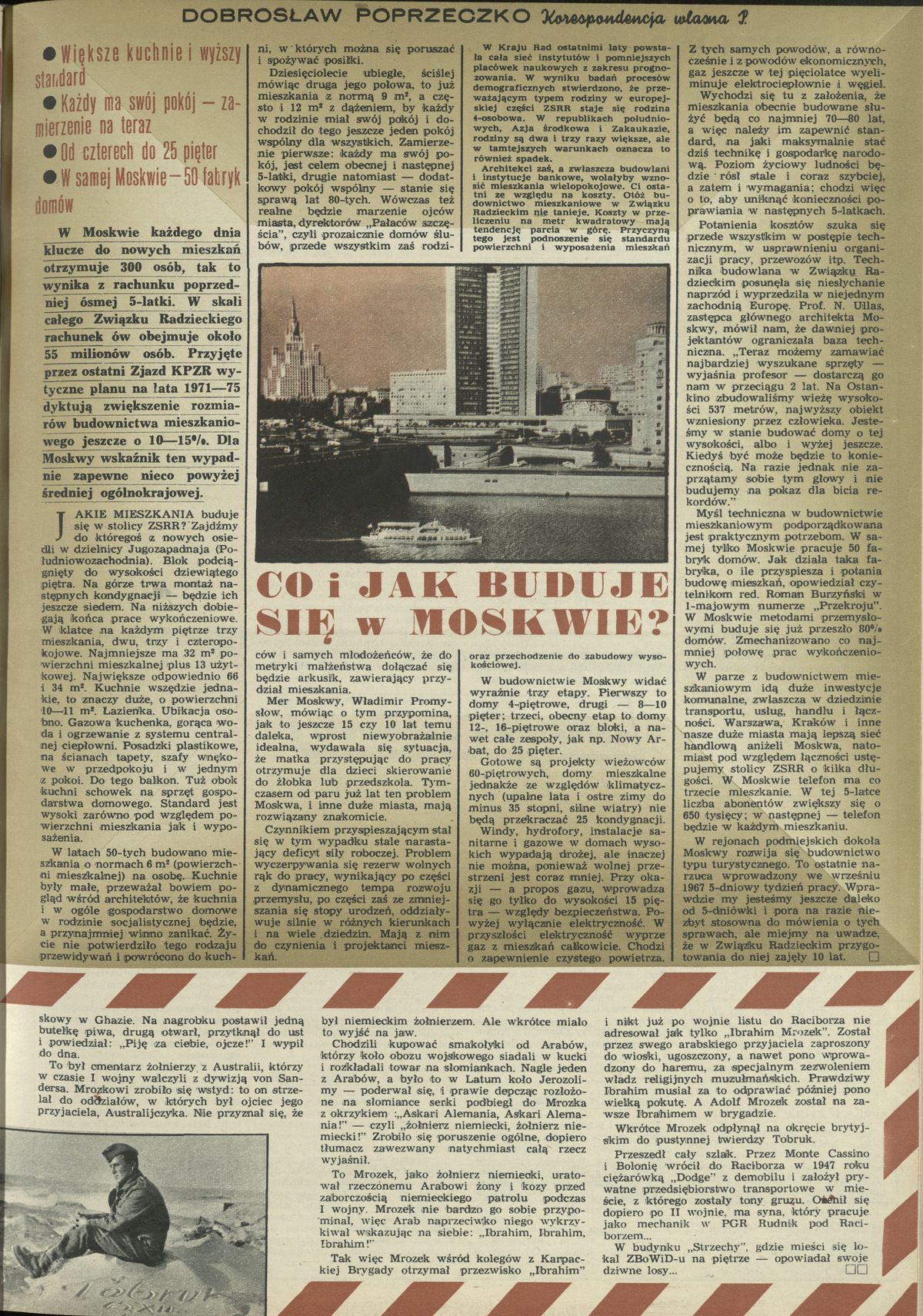 Archiwum / korespondencja własna "Przekroju" nr 1362 (20/1971) 119/355 Podziel się Tytuł Co i jak buduje się w Moskwie? Autor Dobrosław Poprzeczko Rubryka korespondencja własna "Przekroju" Artykuł z numeru 1362 (20/1971) Data wydania 16 maja 1971