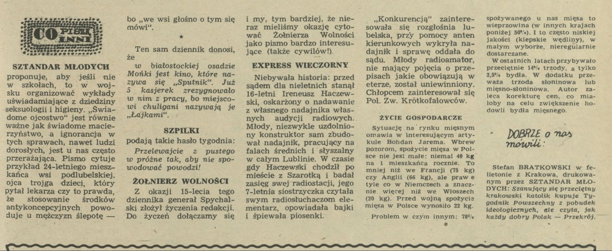 Archiwum / Co piszą inni nr 689 (25/1958) 27668/123969 Podziel się Tytuł Co piszą inni Rubryka Co piszą inni Artykuł z numeru 689 (25/1958) Data wydania 22 kwietnia 1958