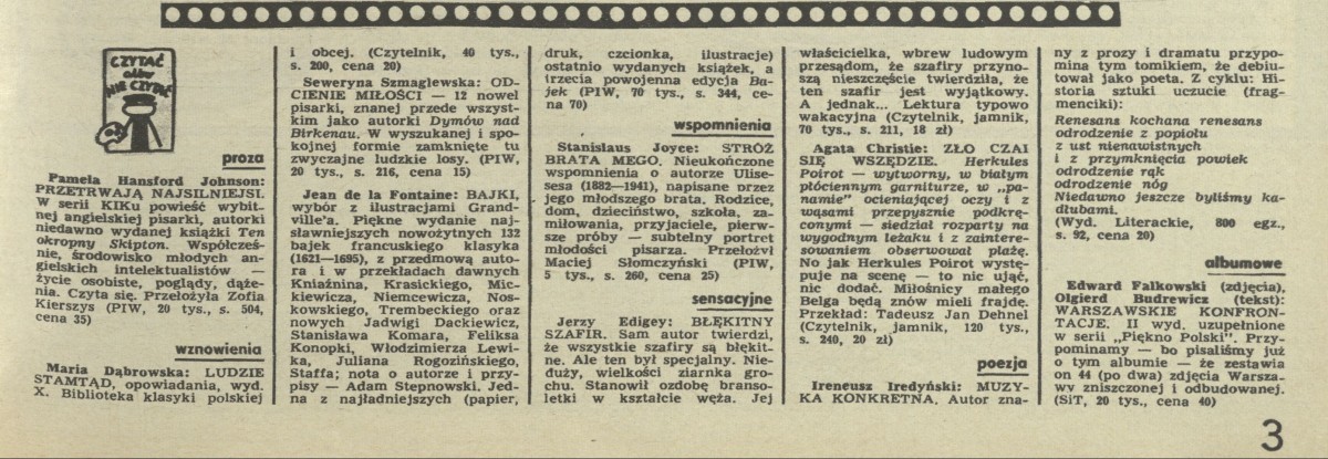 Archiwum / Czytać albo nie czytać? nr 1366 (24/1971) 55638/123969 Podziel się Tytuł Czytać albo nie czytać? Rubryka Czytać albo nie czytać? Artykuł z numeru 1366 (24/1971) Data wydania 13 czerwca 1971 Tagi Pamela Hansford Maria Dąbrowska ludzie stamtąd Stanislaus Joyce