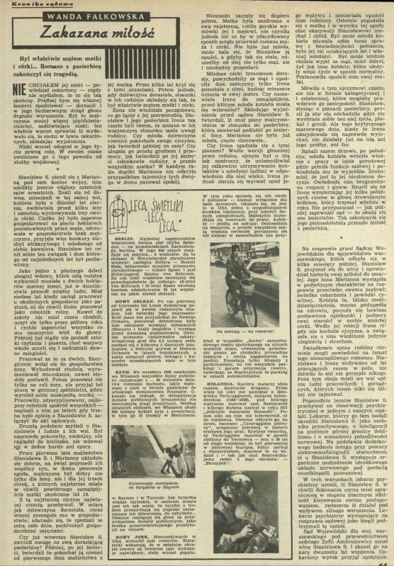 Archiwum / Kronika sądowa nr 1076 (47/1965) 48/53 Podziel się Tytuł Zakazana miłość Autor Wanda Falkowska Rubryka Kronika sądowa Artykuł z numeru 1076 (47/1965) Data wydania 21 listopada 1965