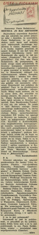 Archiwum / Listy z fiołkiem nr 119 (29/1947) 212/474 Podziel się Tytuł Listy z fiołkiem Autor Konstatny Ildefons (Karakuliambro) Gałczyński Rubryka Listy z fiołkiem Artykuł z numeru 119 (29/1947) Data wydania 20 lipca 1947 Tagi krynica