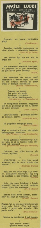 Archiwum / Myśli nr 694 (30/1958) 215/562 Podziel się Tytuł Myśli ludzi wielkich i średnich Autor Bracia Rojek Rubryka Myśli Artykuł z numeru 694 (30/1958) Data wydania 27 lipca 1958