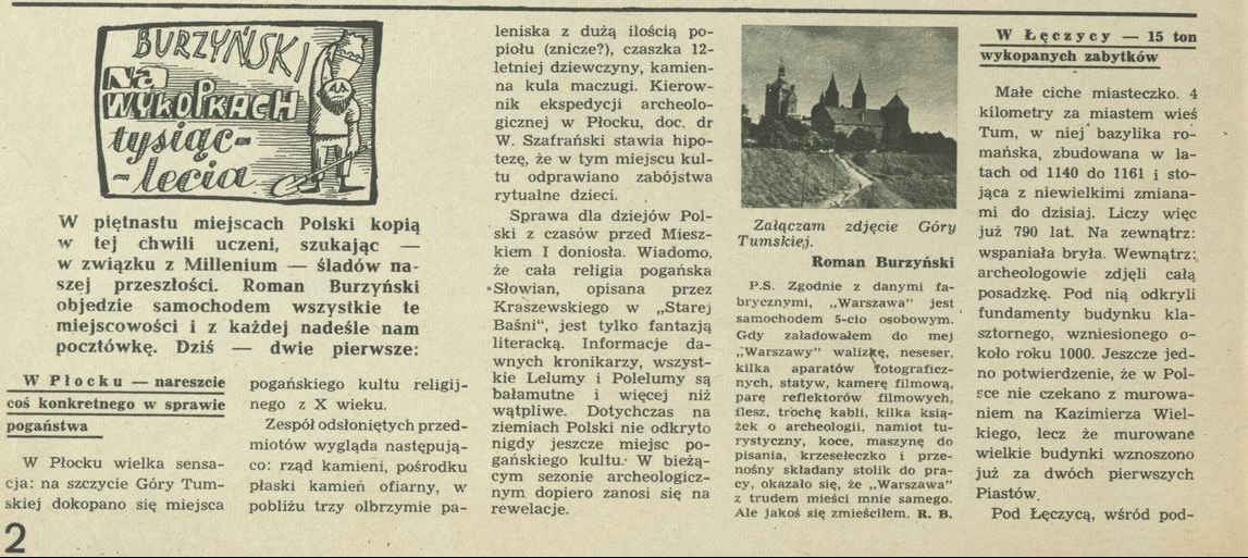 Archiwum / Relacja nr 746 (30/1959) 30530/123969 Podziel się Tytuł Burzyński na wykopkach tysiaclecia Autor Roman Burzyński Kategoria Relacja Artykuł z numeru 746 (30/1959) Data wydania 26 lipca 1959