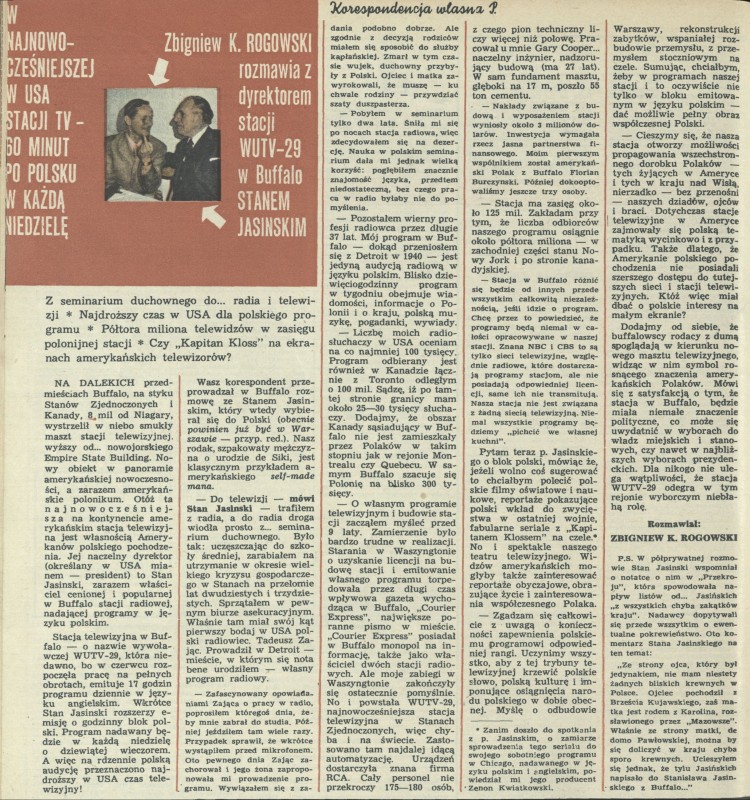 Archiwum / korespondencja własna "Przekroju" nr 1370 (28/1971) 1/2 Podziel się Tytuł W najnowocześniejszej w USA stacji TV Autor Zbigniew K. Rogowski Rubryka korespondencja własna "Przekroju" Artykuł z numeru 1370 (28/1971) Data wydania 11 lipca 1971 Tagi WUTV-29 Buffalo Stan Jasinski