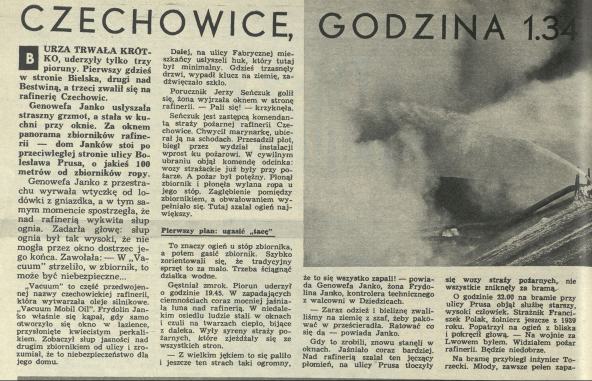 Archiwum / Reportaż nr 1370 (28/1971) 93/115 Podziel się Tytuł Czechowice, godzina 1.34 Autor Janusz Roszko Kategoria Reportaż Artykuł z numeru 1370 (28/1971) Data wydania 11 lipca 1971 Tagi Czechowice pożar Rafineria Czechowice