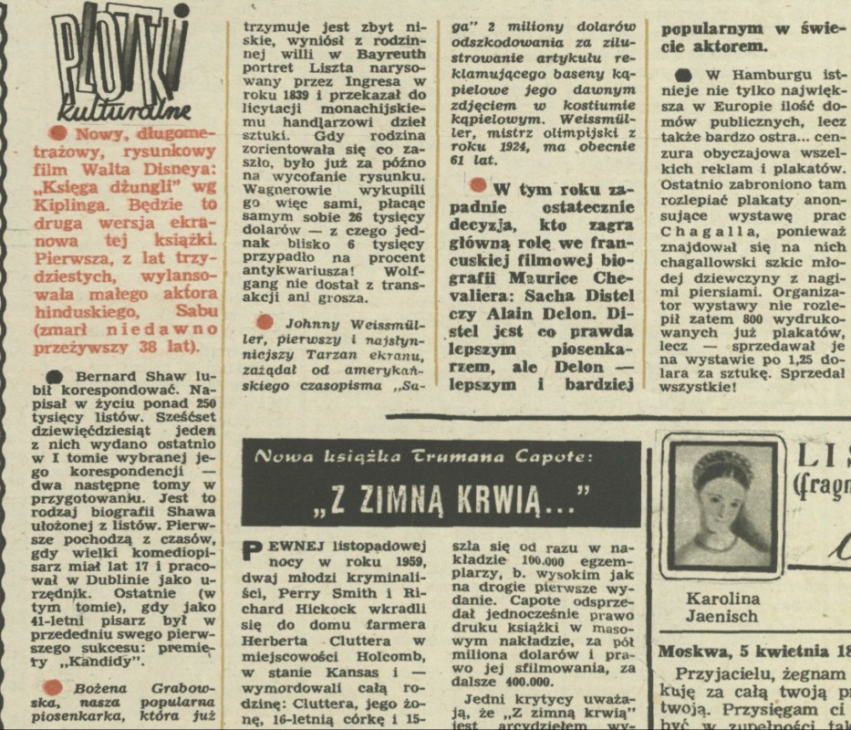 Archiwum / Plotki kulturalne nr 1087 (06/1966) 45555/123969 Podziel się Tytuł Plotki kulturalne Rubryka Plotki kulturalne Artykuł z numeru 1087 (6/1966) Data wydania 6 lutego 1966