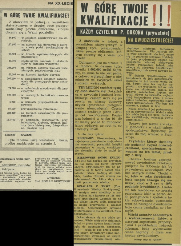 Archiwum / Różności nr 985 (08/1964) 41386/123969 Podziel się Tytuł W górę twoje kwalifikacje! Kategoria Różności Artykuł z numeru 985 (8/1964) Data wydania 23 lutego 1964 Tagi kształcenie kursy szkoły