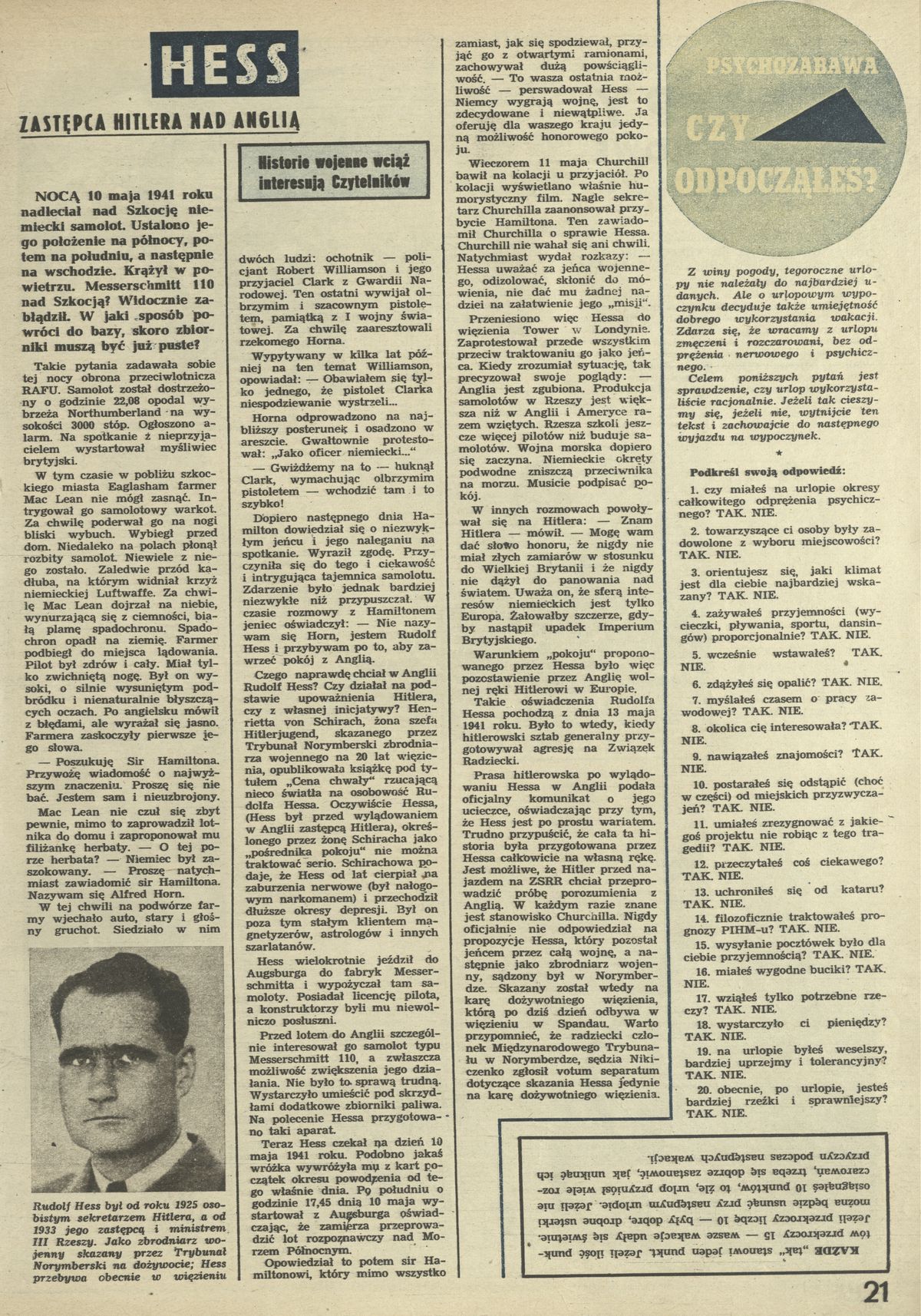 Archiwum / Reportaż nr 802 (34/1960) 07/52 Podziel się Tytuł Hess zastępca Hitlera nad Anglią Kategoria Reportaż Artykuł z numeru 802 (34/1960) Data wydania 21 sierpnia 1960