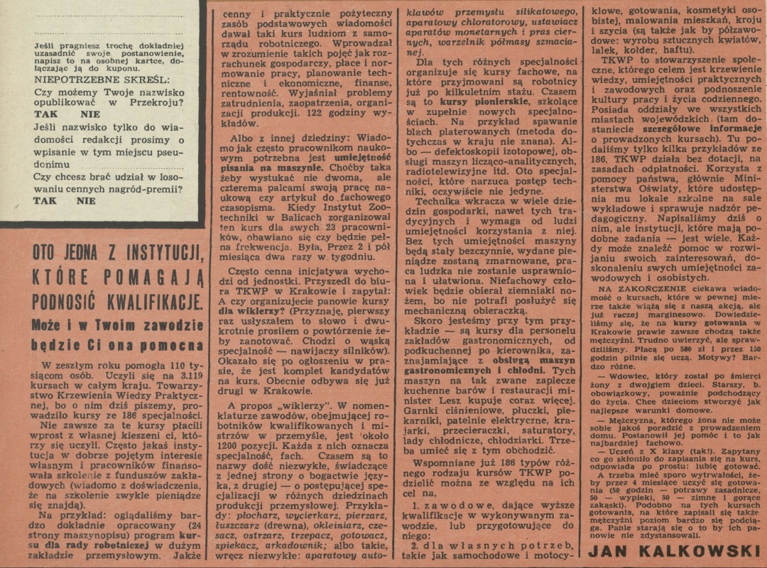 Archiwum / Różności nr 986 (09/1964) 218/1263 Podziel się Tytuł Oto jedna z instytucji, które pomagają podnosić kwalifikacje Autor Jan Kalkowski Kategoria Różności Artykuł z numeru 986 (9/1964) Data wydania 1 marca 1964 Tagi podnoszenie kwalifikacji instytucje dokształcanie