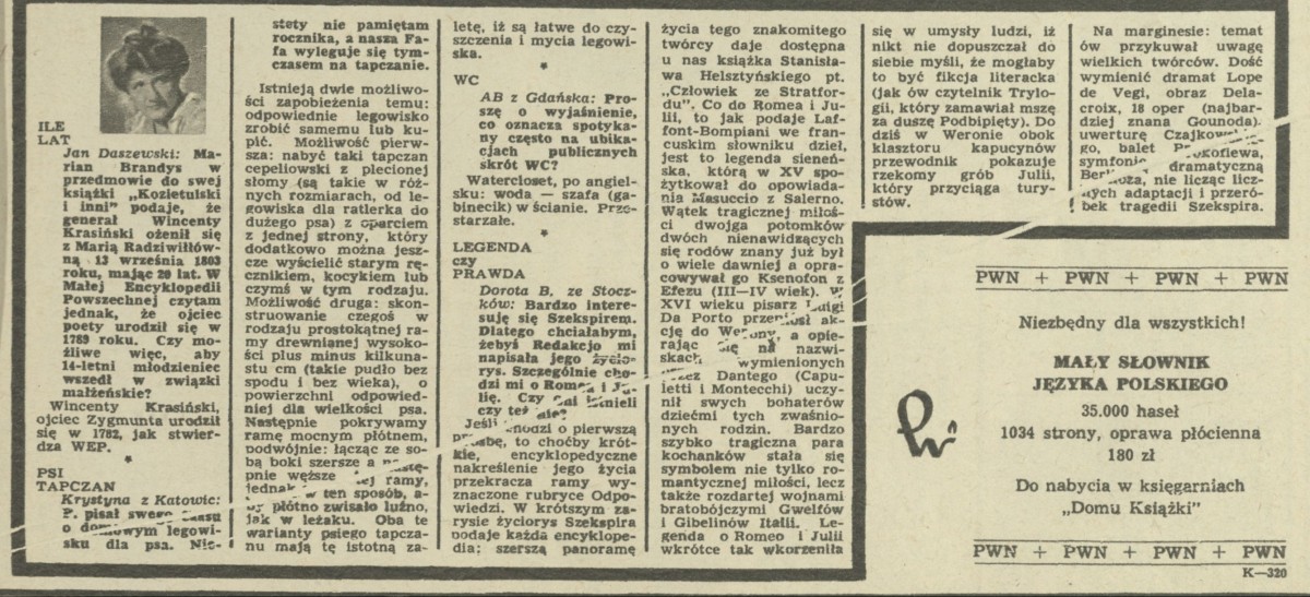 Archiwum / Skrzynka odpowiedzi nr 1243 (05/1969) 10/354 Podziel się Tytuł Skrzynka odpowiedzi Rubryka Skrzynka odpowiedzi Artykuł z numeru 1243 (5/1969) Data wydania 2 lutego 1969 Tagi skrzynka odpowiedzi psi tapczan