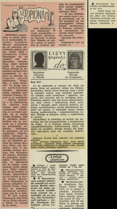 Archiwum / Zagadka kryminalna nr 1097 (16/1966) 110/396 Podziel się Tytuł Utopiona Rubryka Zagadka kryminalna Artykuł z numeru 1097 (16/1966) Data wydania 17 kwietnia 1966