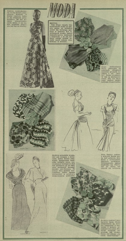 Archiwum / Moda nr 63 (25/1946) 1/4 Podziel się Tytuł Moda Rubryka Moda Artykuł z numeru 63 (25/1946) Data wydania 23 czerwca 1946 Tagi moda damska suknie wzory deseń motyle