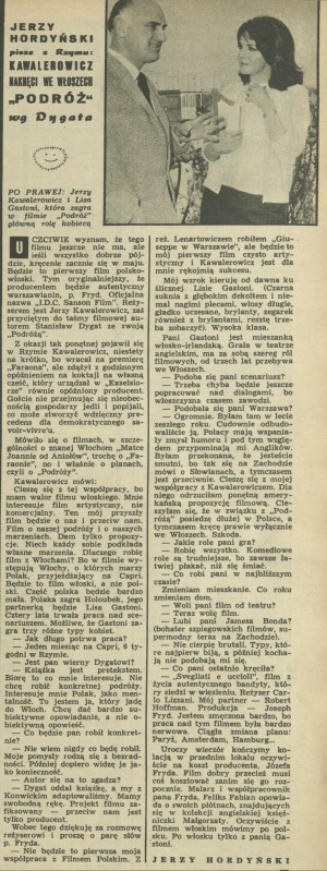 Archiwum / korespondencja własna "Przekroju" nr 1098 (17/1966) 665/2107 Podziel się Tytuł Kawalerowicz kręci we Włoszech Podróż wg Dygata Autor Jerzy Hordyński Rubryka korespondencja własna "Przekroju" Artykuł z numeru 1098 (17/1966) Data wydania 24 kwietnia 1966