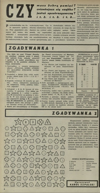 Archiwum / Zgadywanki Przekroju nr 232 (38/1949) 08/646 Podziel się Tytuł Czy masz dobrą pamięć? Autor Karol Szpalski Rubryka Zgadywanki Przekroju Artykuł z numeru 232 (38/1949) Data wydania 18 września 1949 Tagi zgadywanka psycho-zabawa