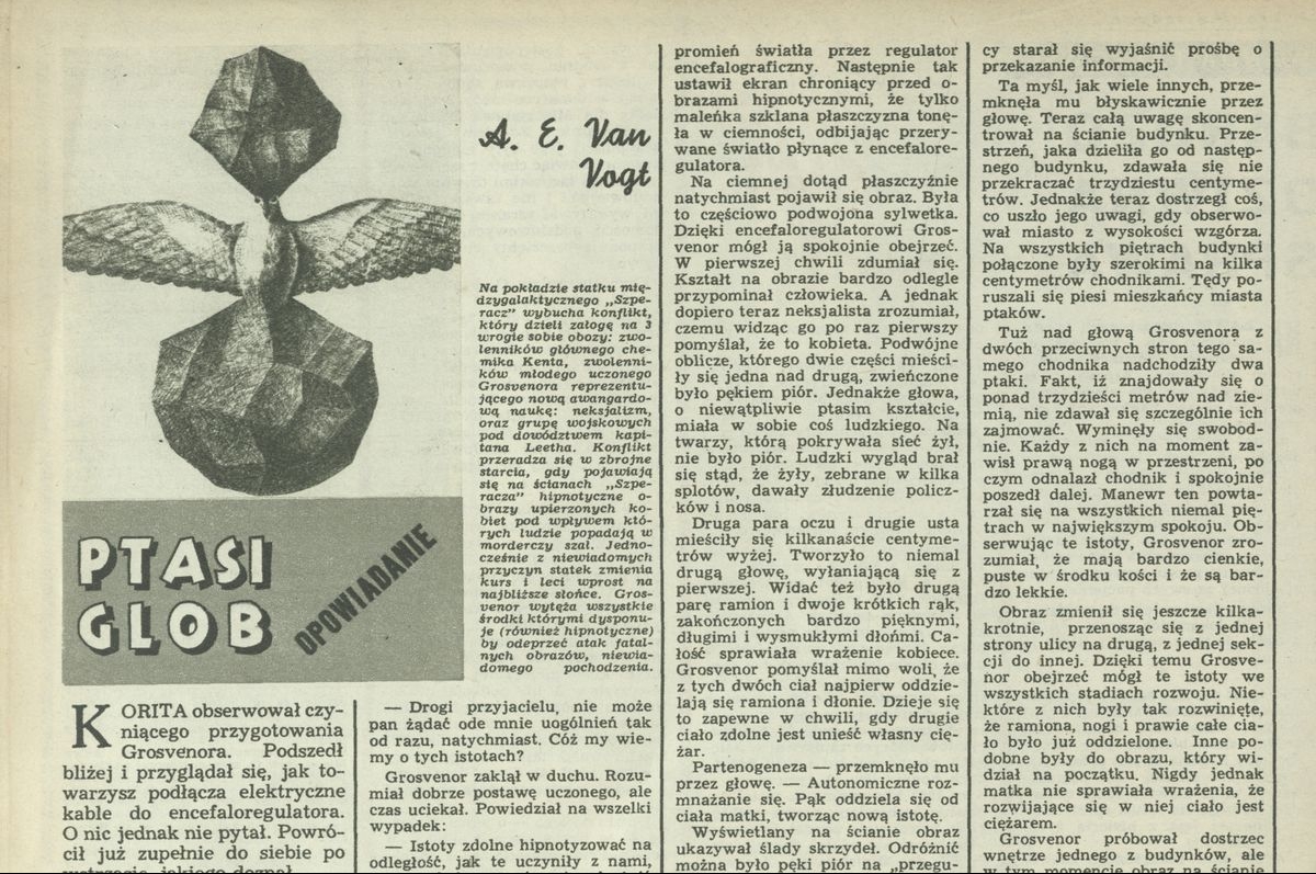 Archiwum / Opowiadanie nr 1274 (36/1969) 52292/123969 Podziel się Tytuł Ptasi Glob Autor A. E. Van Vogt Franciszek Welczar Kategoria Opowiadanie Artykuł z numeru 1274 (36/1969) Data wydania 7 września 1969