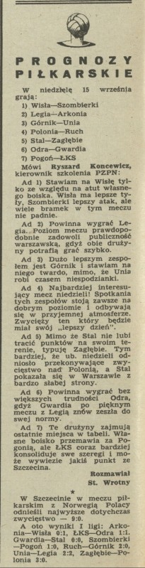 Archiwum / Piłkarskie prognozy nr 962 (37/1963) 40405/123969 Podziel się Tytuł Prognozy piłkarskie Autor Stanisław Wrotny Rubryka Piłkarskie prognozy Artykuł z numeru 962 (37/1963) Data wydania 15 września 1963 Tagi piłka nożna prognozy mecze