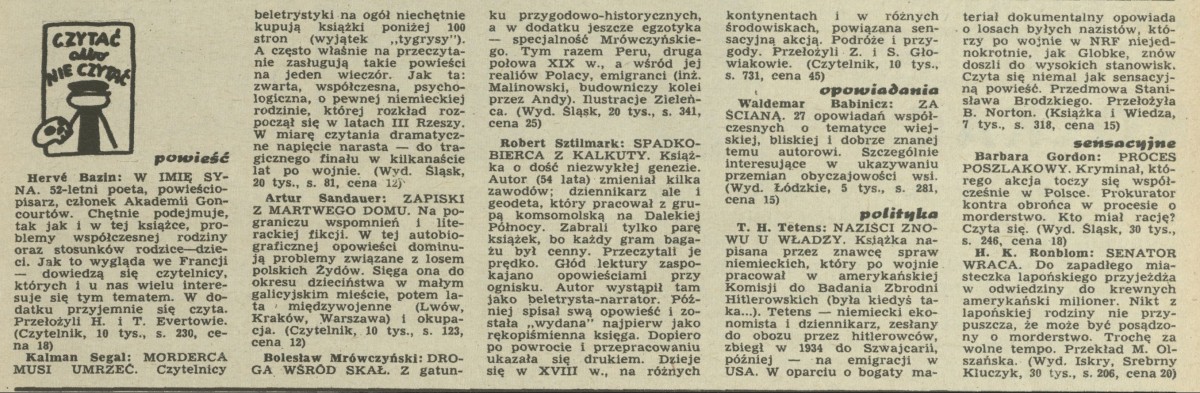 Archiwum / Czytać albo nie czytać? nr 962 (37/1963) 16/47 Podziel się Tytuł Czytać albo nie czytać Rubryka Czytać albo nie czytać? Artykuł z numeru 962 (37/1963) Data wydania 15 września 1963 Tagi recenzje powieść opowiadania