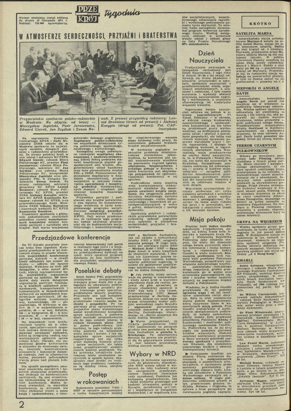 Archiwum / Przekrój tygodnia nr 1389 (47/1971) 16/82 Podziel się Tytuł Przekrój Tygodnia Rubryka Przekrój tygodnia Artykuł z numeru 1389 (47/1971) Data wydania 21 listopada 1971 Tagi Mieczysław Jagielski Jaan Szydlak Indira Ghandi Barzel