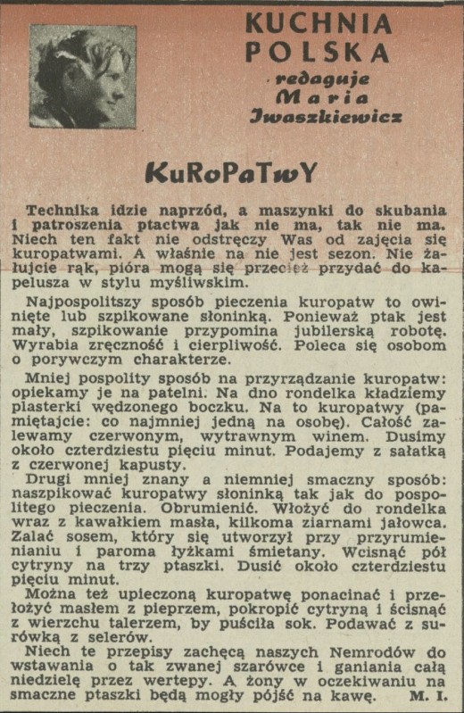Archiwum / Kuchnia Polska nr 962 (37/1963) 59/197 Podziel się Tytuł Kuchnia polska. Redaguje Maria Iwaszkiewicz Autor Maria Iwaszkiewicz Rubryka Kuchnia Polska Artykuł z numeru 962 (37/1963) Data wydania 15 września 1963 Tagi kuchnia polska Maria Iwaszkiewicz kuropatwy