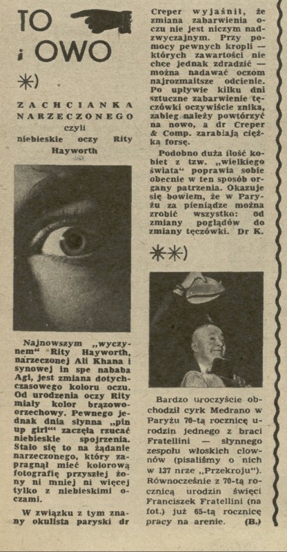 Archiwum / To i owo nr 208 (14/1949) 6393/123969 Podziel się Tytuł to i owo Rubryka To i owo Artykuł z numeru 208 (14/1949) Data wydania 3 kwietnia 1949