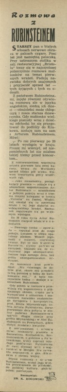 Archiwum / Wywiad nr 688 (24/1958) 2/4 Podziel się Tytuł Rozmowa z Rubinsteinem Autor Zbigniew K. Rogowski Kategoria Wywiad Artykuł z numeru 688 (24/1958) Data wydania 15 czerwca 1958