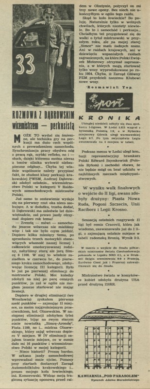 Archiwum / Sport nr 656 (45/1957) 09/45 Podziel się Tytuł Rozmowa z Dąbrowskim wicemistrzem-perkusistą Autor Top Rubryka Sport Artykuł z numeru 656 (45/1957) Data wydania 3 listopada 1957 Tagi samochód rajd samochodowy